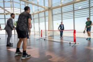 Jugadores de pádel en el Sky Costanera de Santiago.