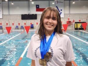 Talca.- Con solo 6 años, Antonia Jiménez, se inició en la natación, al ingresar al taller extraescolar de su colegio Montessori Talca. En una década de trabajo y perseverancia, se ha transformado en una de las deportistas más destacadas del Maule, ahora, la joven que cursa tercero medio, representará a Chile en el mundial Gymnasiada 2023, a realizarse en Dunkerque, Francia, entre el 10 y 16 de julio próximo.